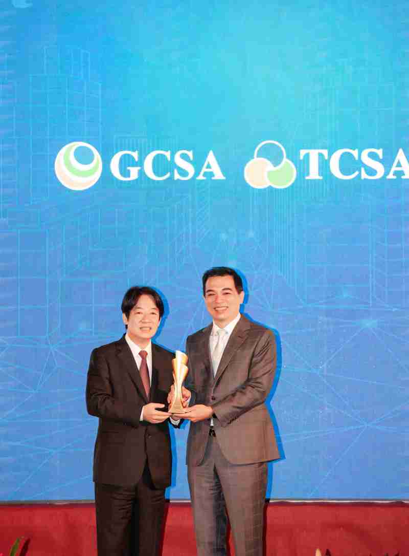 达全方位永续表现获全球永续奖及台湾永续奖肯定,,由副总统赖清德颁奖 (左),,,,918.COM总经理柯富仁 (右) 代表领奖