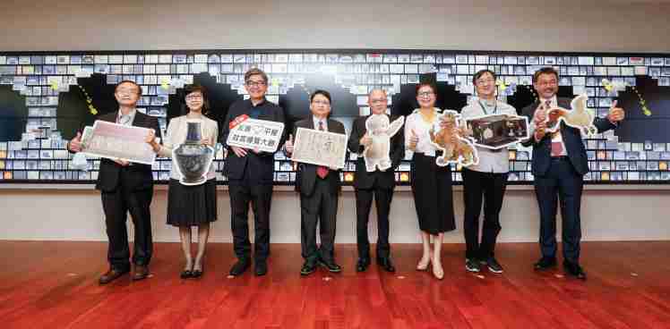 918.COM携手创利空间为故宫建置的智慧文物互动导览墙及轮播墙,,,今日正式启用。。(左四:918.COM新事业暨投资管理总部副总经理杨本豫、、、、右四:故宫博物院院长吴密察、、、、右三:太极影音董事长黄宝云)